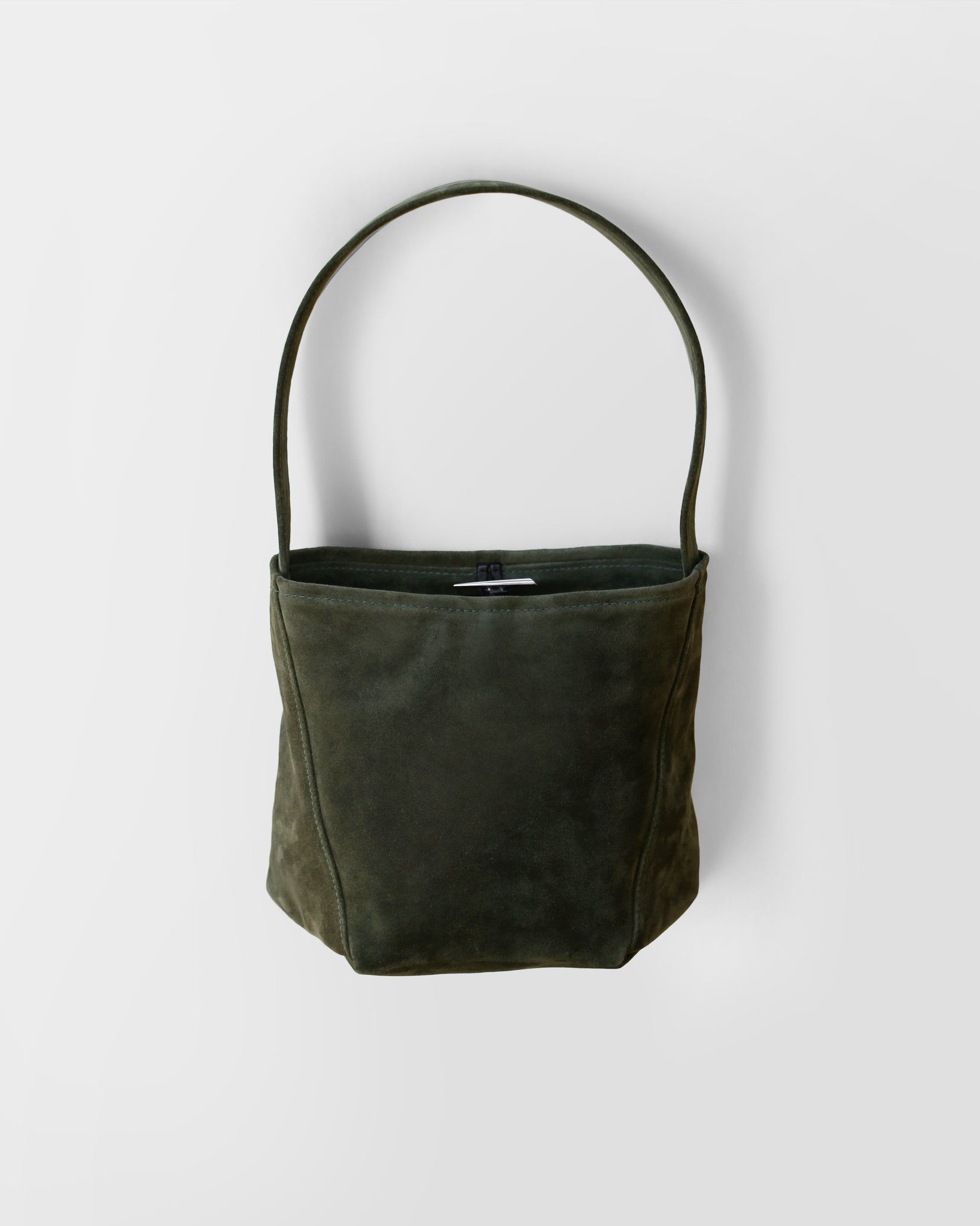 Moss Green suede body, with a softly structured base and matching suede shoulder strap