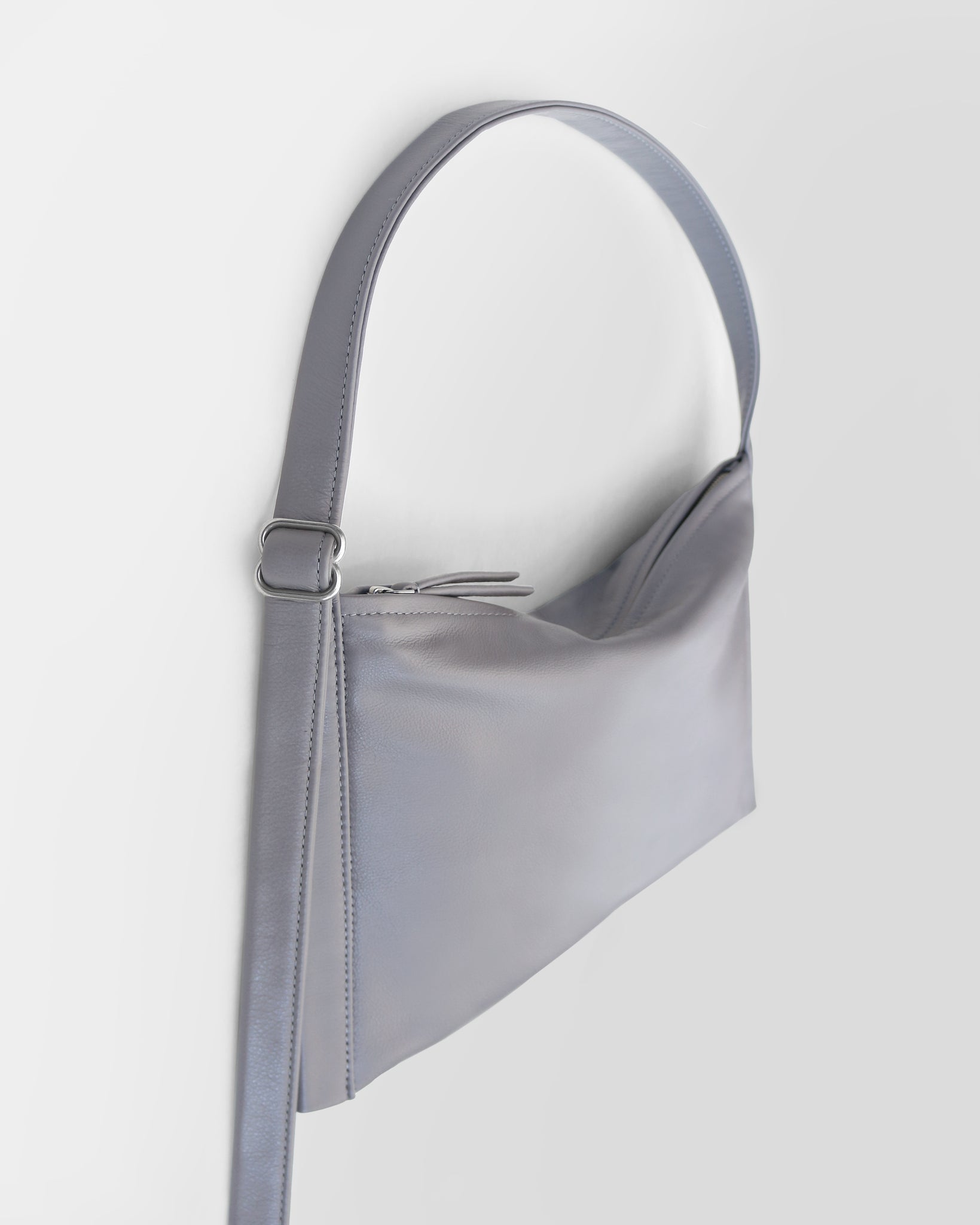 Lunar grey leather body with adjustable matching leather shoulder strap