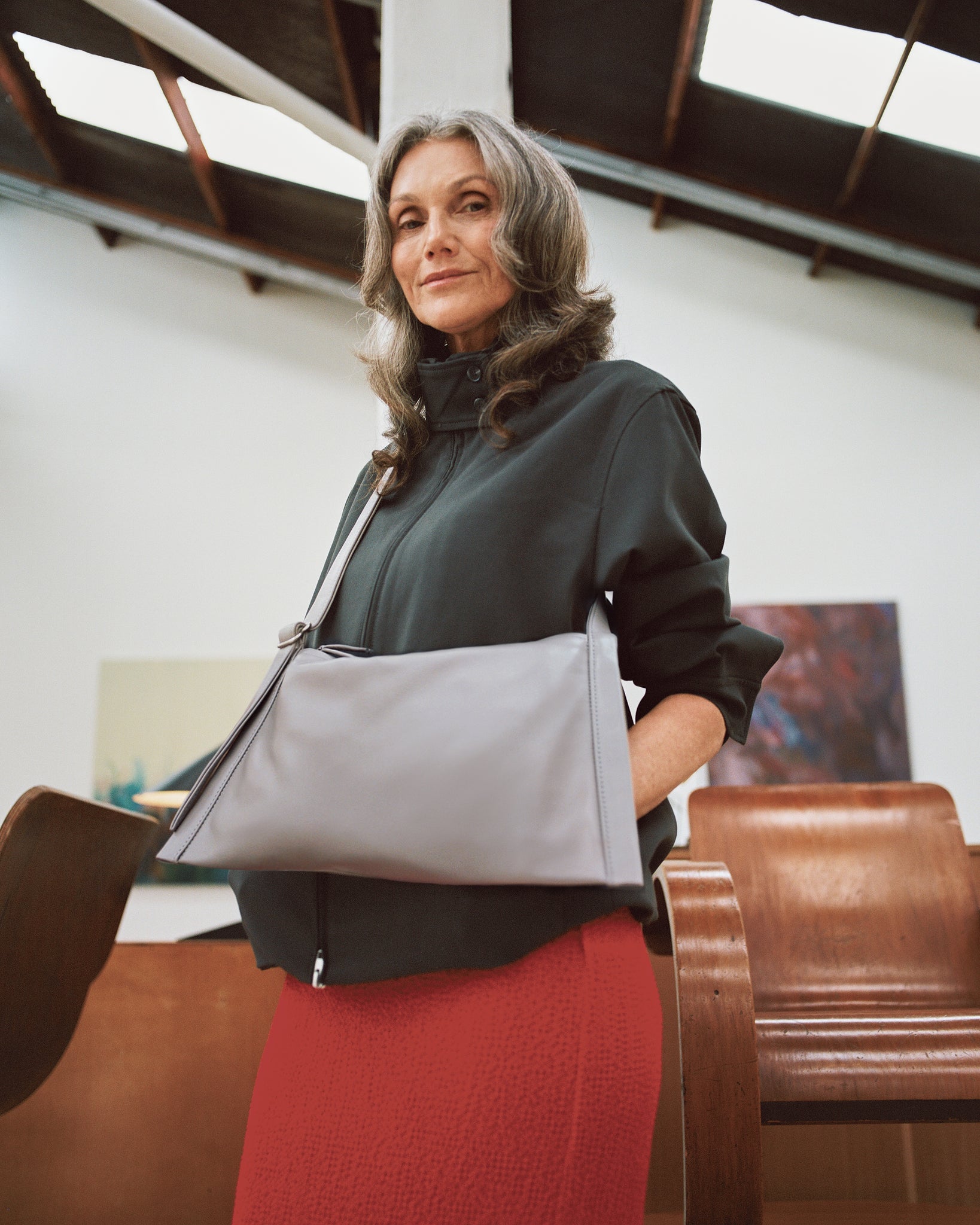 Finely honed in its simplicity and detail, this essential bag is made for every occasion. The Lunar hue is a luminous grey with an exceptionally soft touch and natural pebble texture. It sits flat yet shapes naturally around what it carries, making it the perfect travel companion. Its adjustable strap offers effortless versatility, carrying with ease from day to evening.
