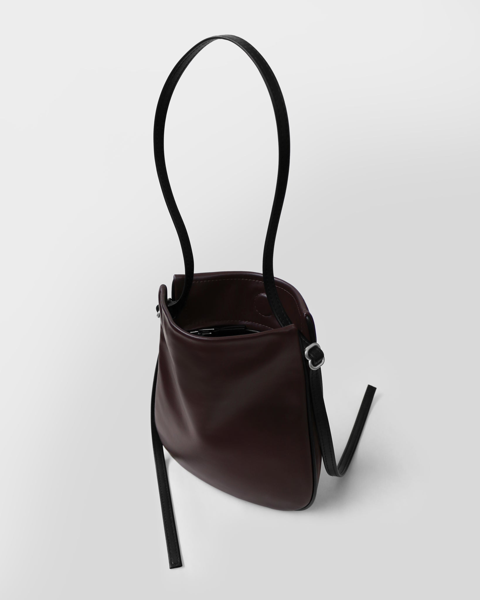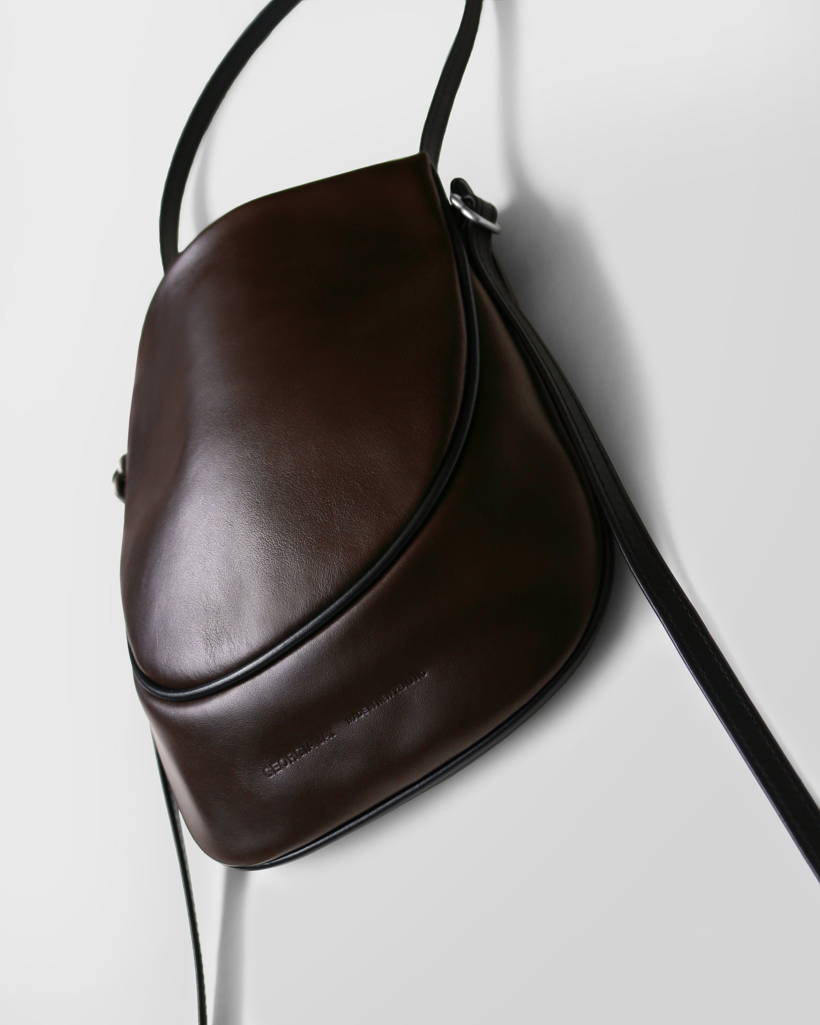 Fluid in form and softly expressive, the Ovo Pouch reveals a sculptural silhouette defined by tonal contrast. The Coffee and Black hues create a deep, sophisticated two-tone effect with a supple feel, smooth finish, and luminous touch. Fine tonal leather piping accents the seamless front and continues through the contoured back panels, tracing gentle lines that add depth and dimension. Designed to move with ease, it rests naturally against the body, while the adjustable strap offers versatile wear.