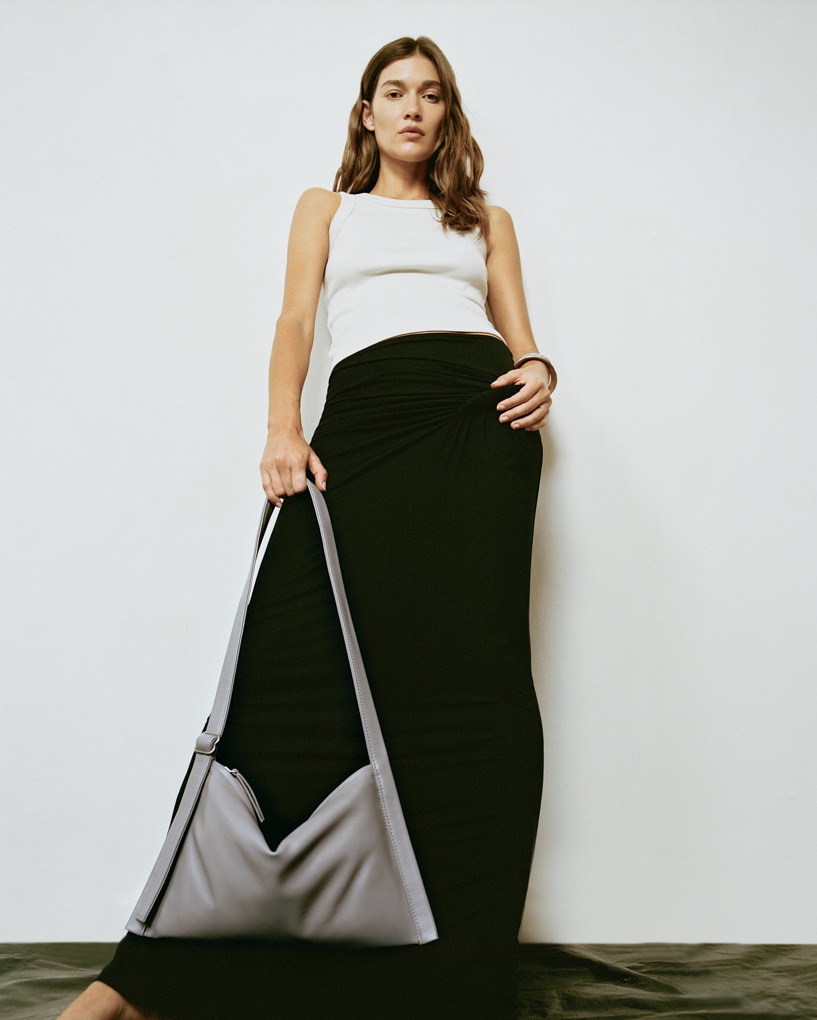 Finely honed in its simplicity and detail, this essential bag is made for every occasion. The Lunar hue is a luminous grey with an exceptionally soft touch and natural pebble texture. It sits flat yet shapes naturally around what it carries, making it the perfect travel companion. Its adjustable strap offers effortless versatility, carrying with ease from day to evening.