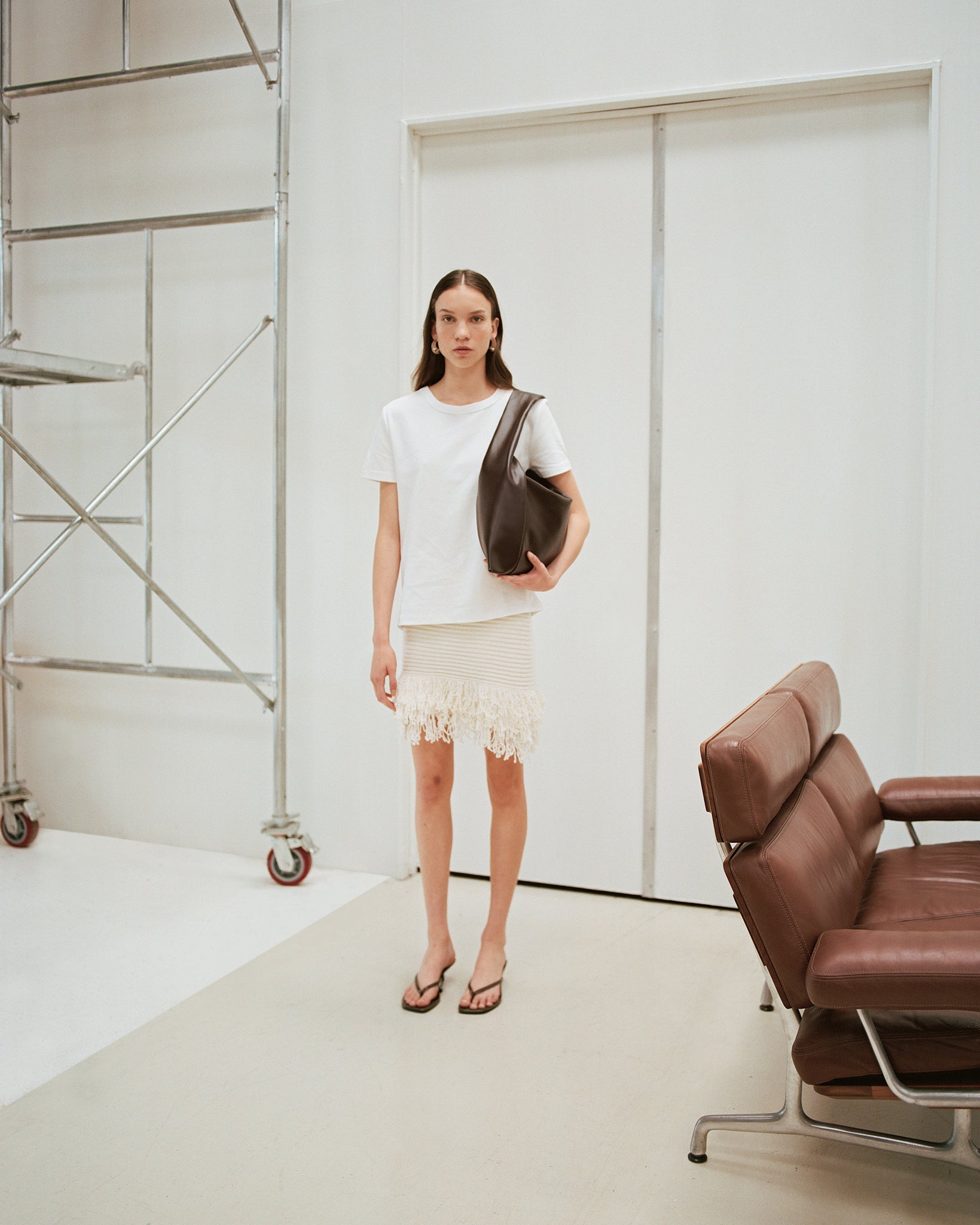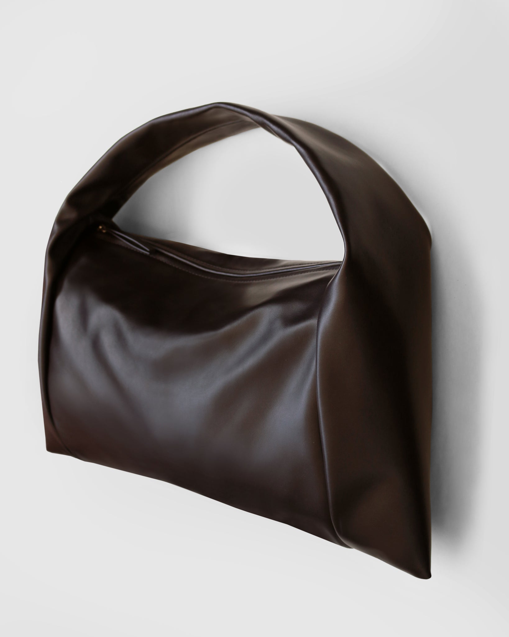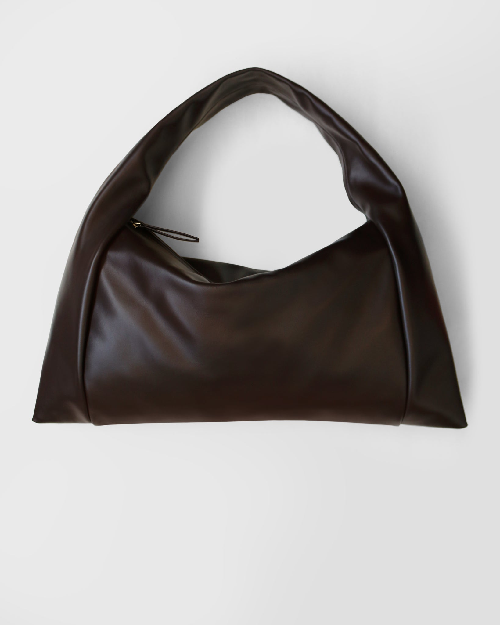 Defined by relaxed structure and generous sculptural proportion, the Flo is a soft yet grounded carryall designed for everyday ease. The Coffee hue is a deep, elegant brown with a supple feel, smooth finish, and luminous touch. Its shoulder strap flows seamlessly into the body, offering comfort and security with an oversized silhouette and relaxed slouch.