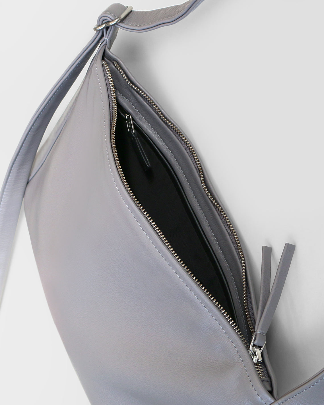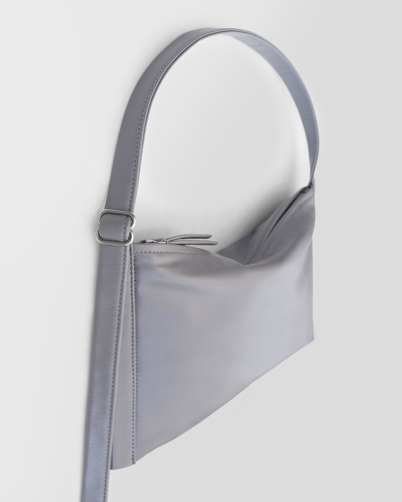 Lunar grey leather body with adjustable matching leather shoulder strap