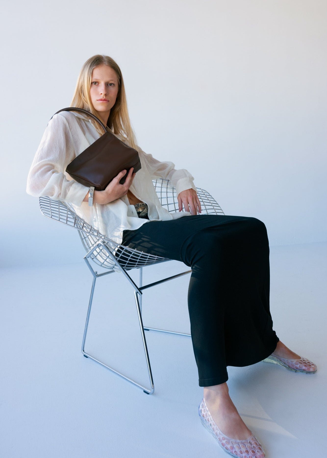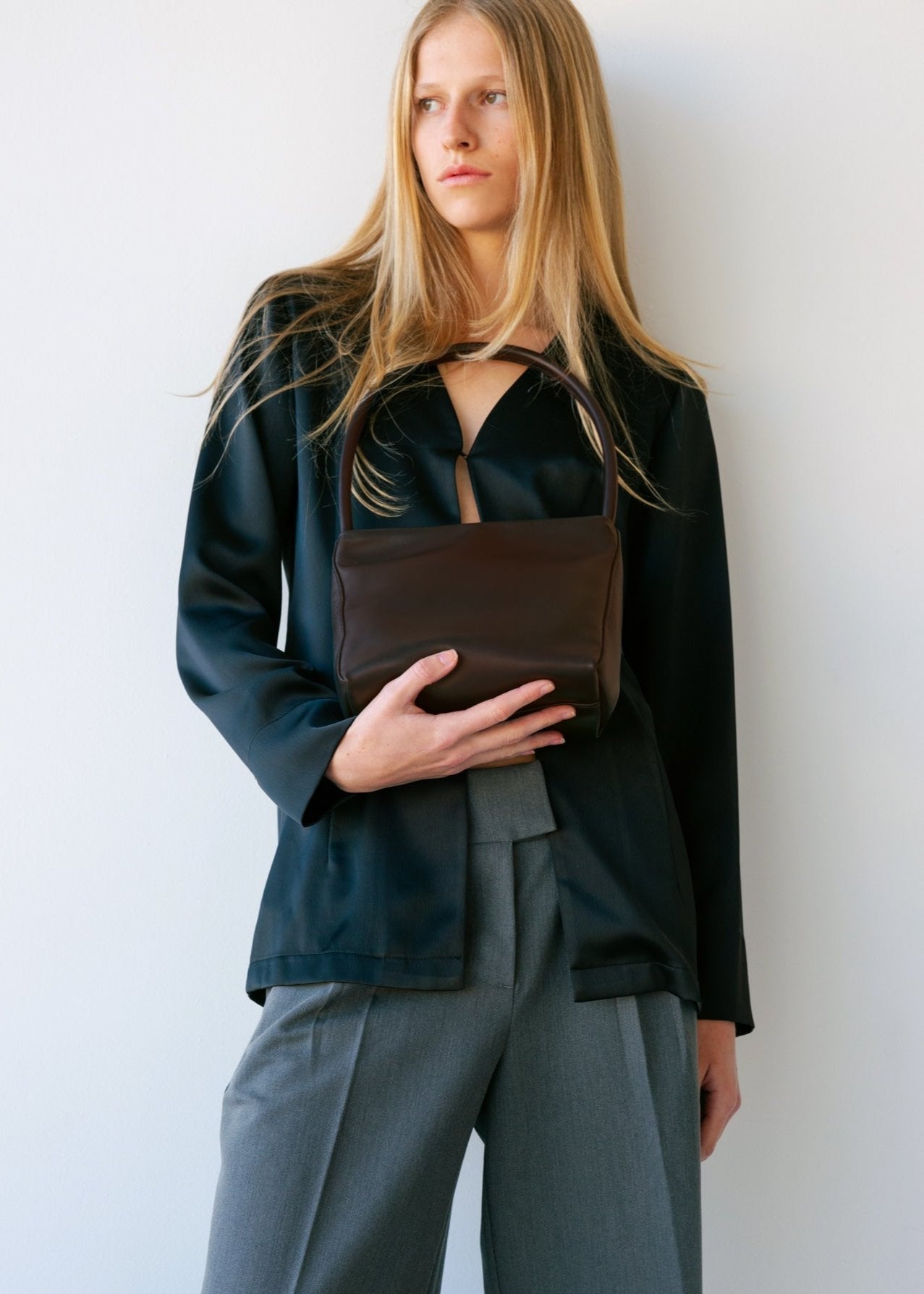Designed to seamlessly blend practicality with effortless elegance, the Little Ombra exudes refined, sleek sophistication. Featuring our signature asymmetric front darts, it boasts a modern, sculpted shape, while the rounded leather shoulder strap provides both structure and comfort. With the perfect midi size, it offers ample space for your essentials, effortlessly combining style and function—ideal for both everyday wear and special occasions. A timeless piece that emphasises quality over excess, made for those who prefer understated luxury.