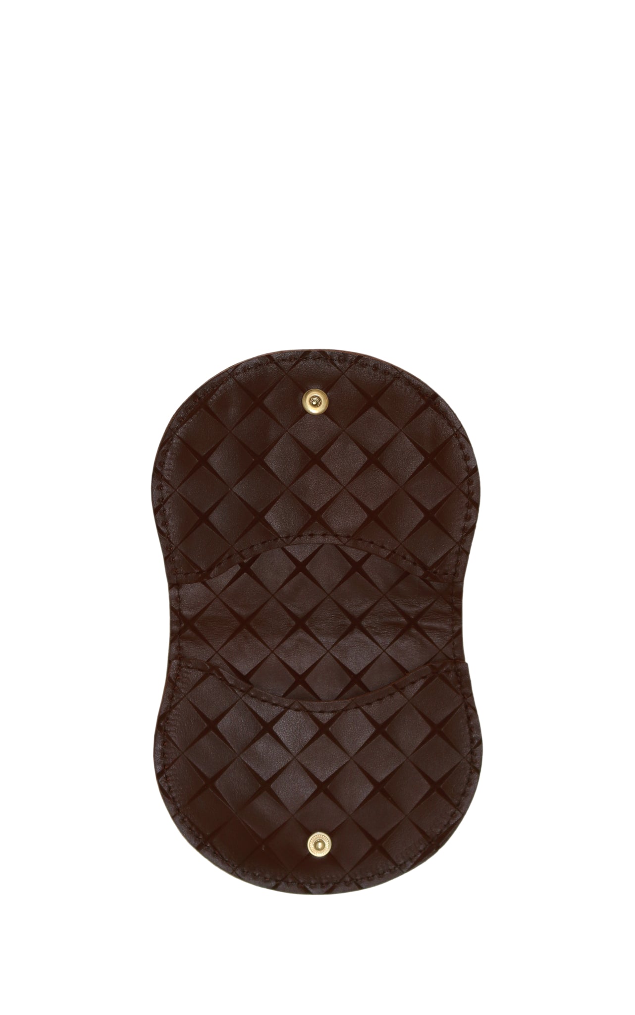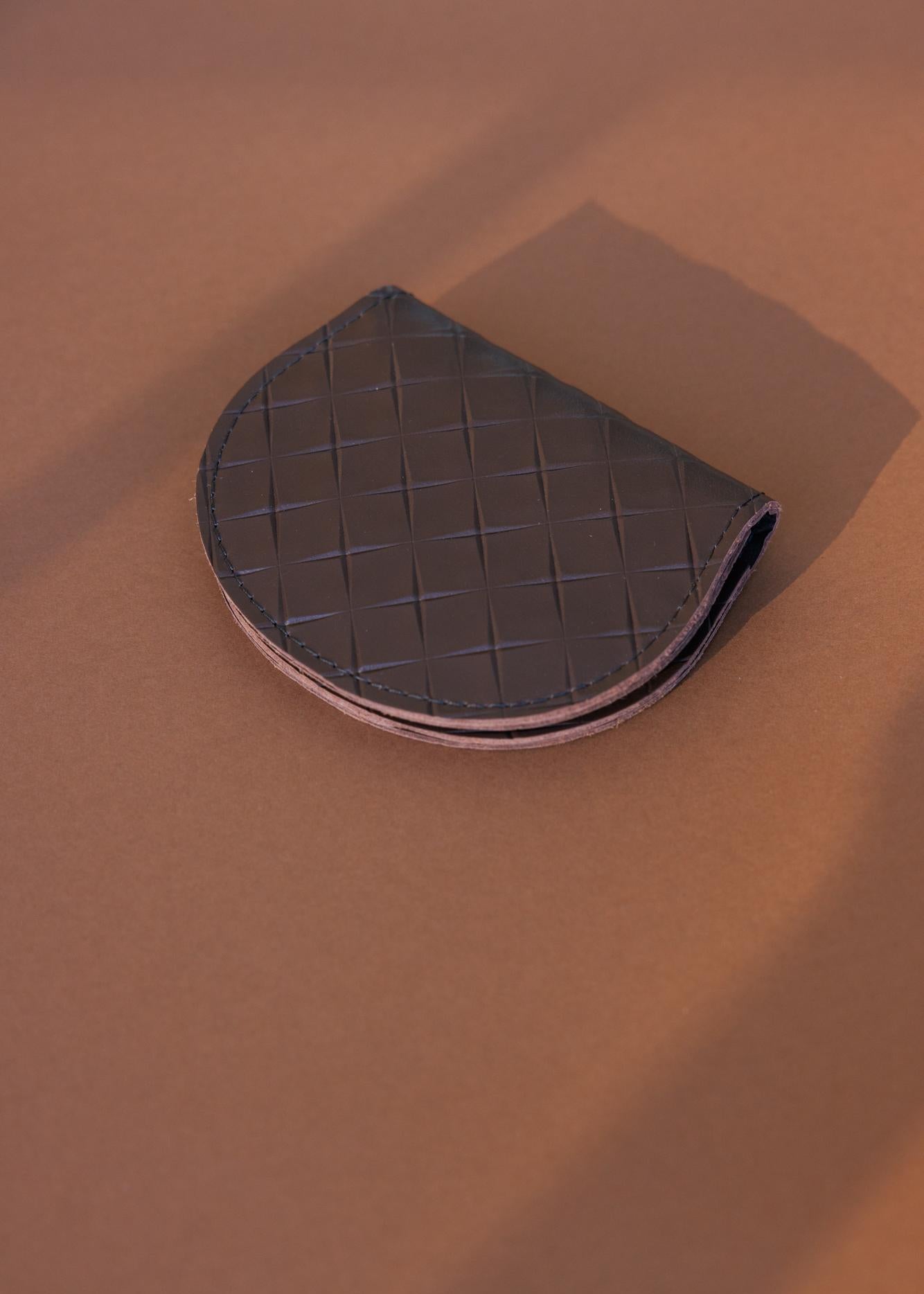 A curved, minimalist wallet that balances simplicity and playfulness. It’s finished with a polished metal snap closure for refined everyday use.