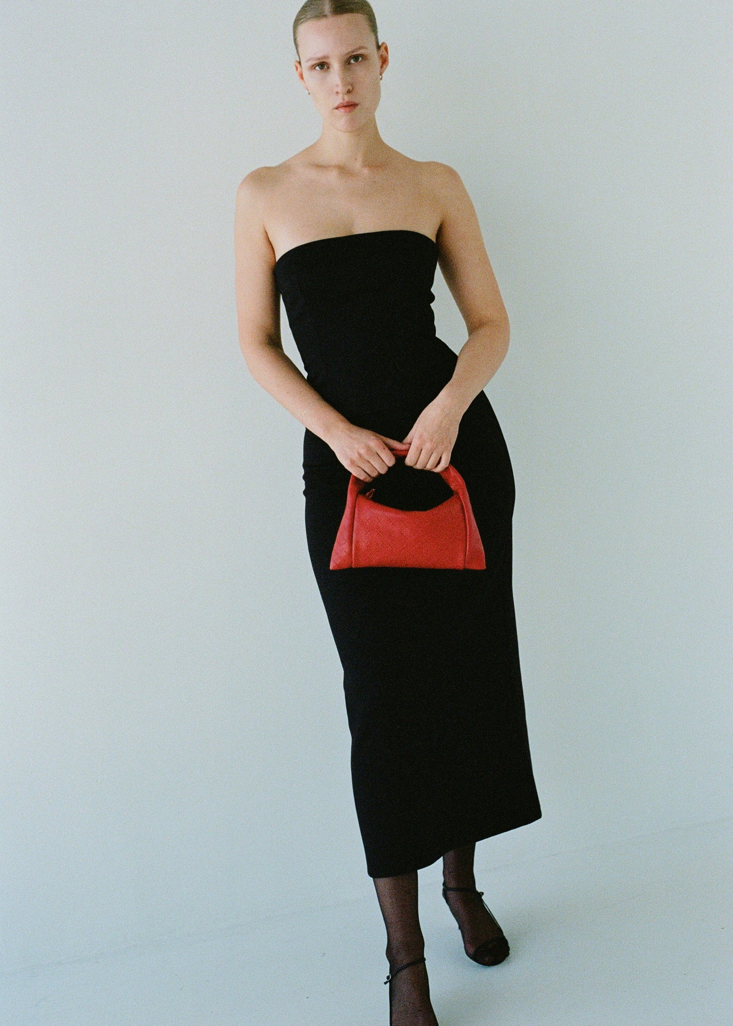 Softly structured and intuitively designed, the Mini FLO sits naturally in hand. Its relaxed silhouette and compact form make it a considered choice for evening moments or special occasions. A plush handle offers ease, while an internal drop pocket and top zip keep essentials secure.