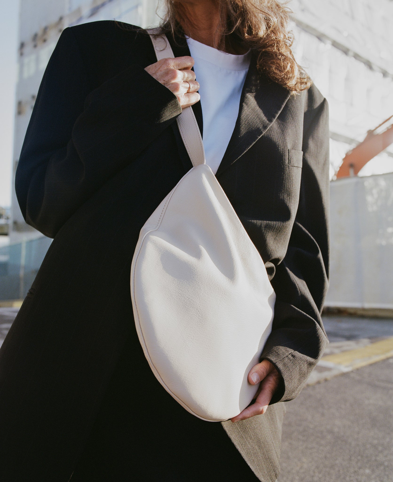 Designed for simplicity around a flat, accentuated curve. An everyday crossbody bag that moulds to the contents it carries and offers a soft and sleek slouch.